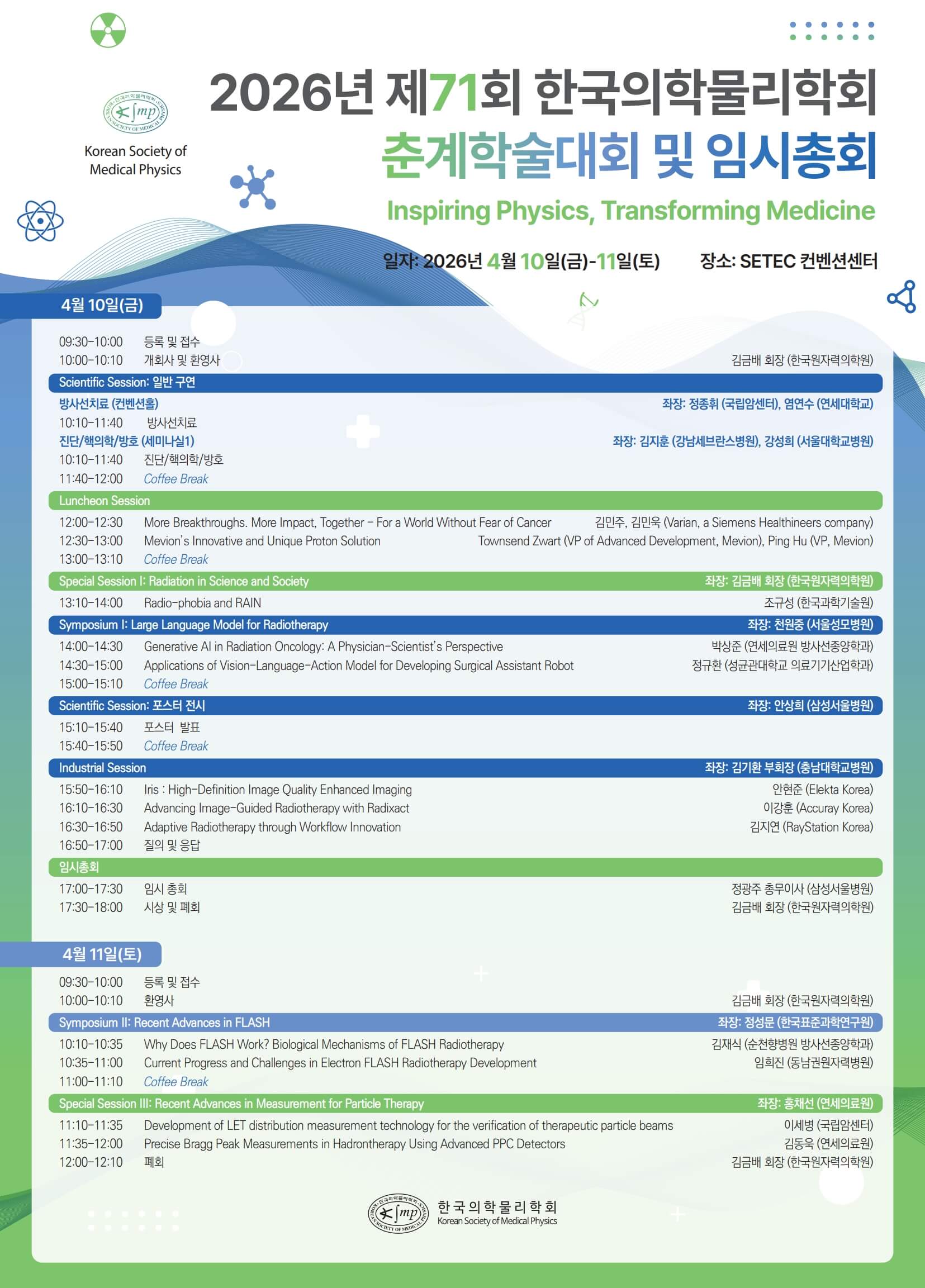 [한국의학물리학회]제71회 한국의학물리학회 춘계학술대회 및 임시총회
