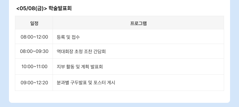 게시글 등록 오류, 글 수정 및 삭제 요청 등 학회동정 관련 기술 문의는 오류화면 이미지 등을 포함하여
