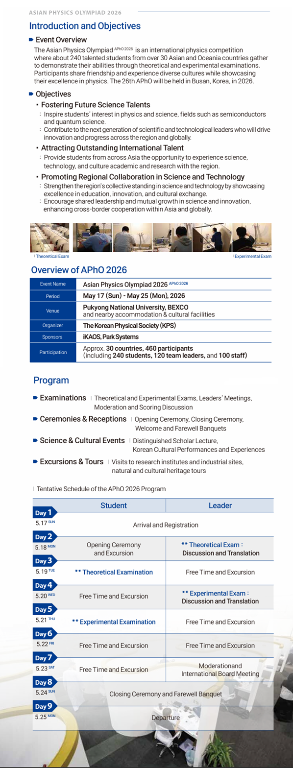 2026년 아시아물리올림피아드( APhO 2026) 개최