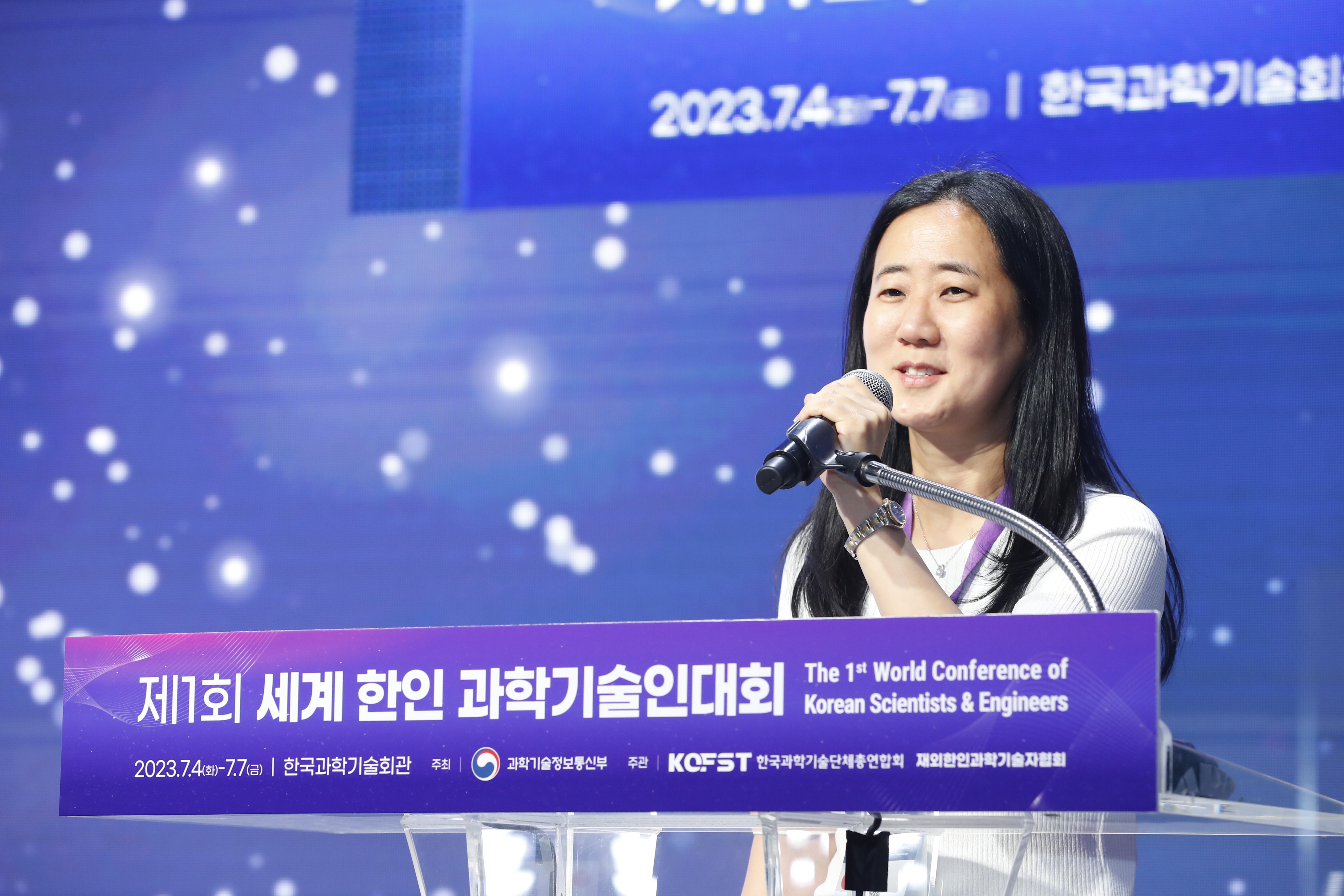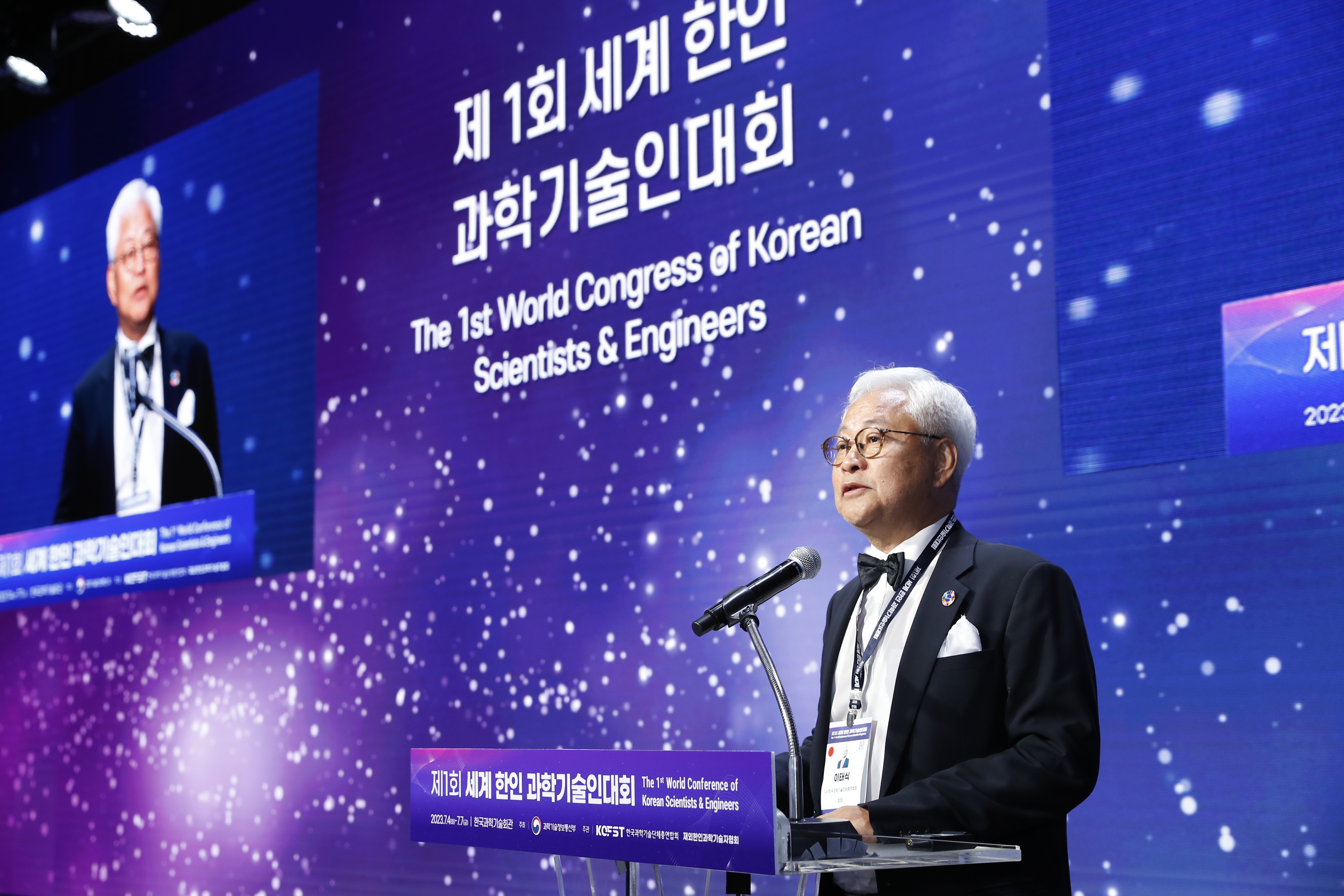 전경_1. 7월 4일 서울 강남구 한국과학기술회관에서 열린 '제1회 세계 한인 과학기술인대회'를 진행중이다.