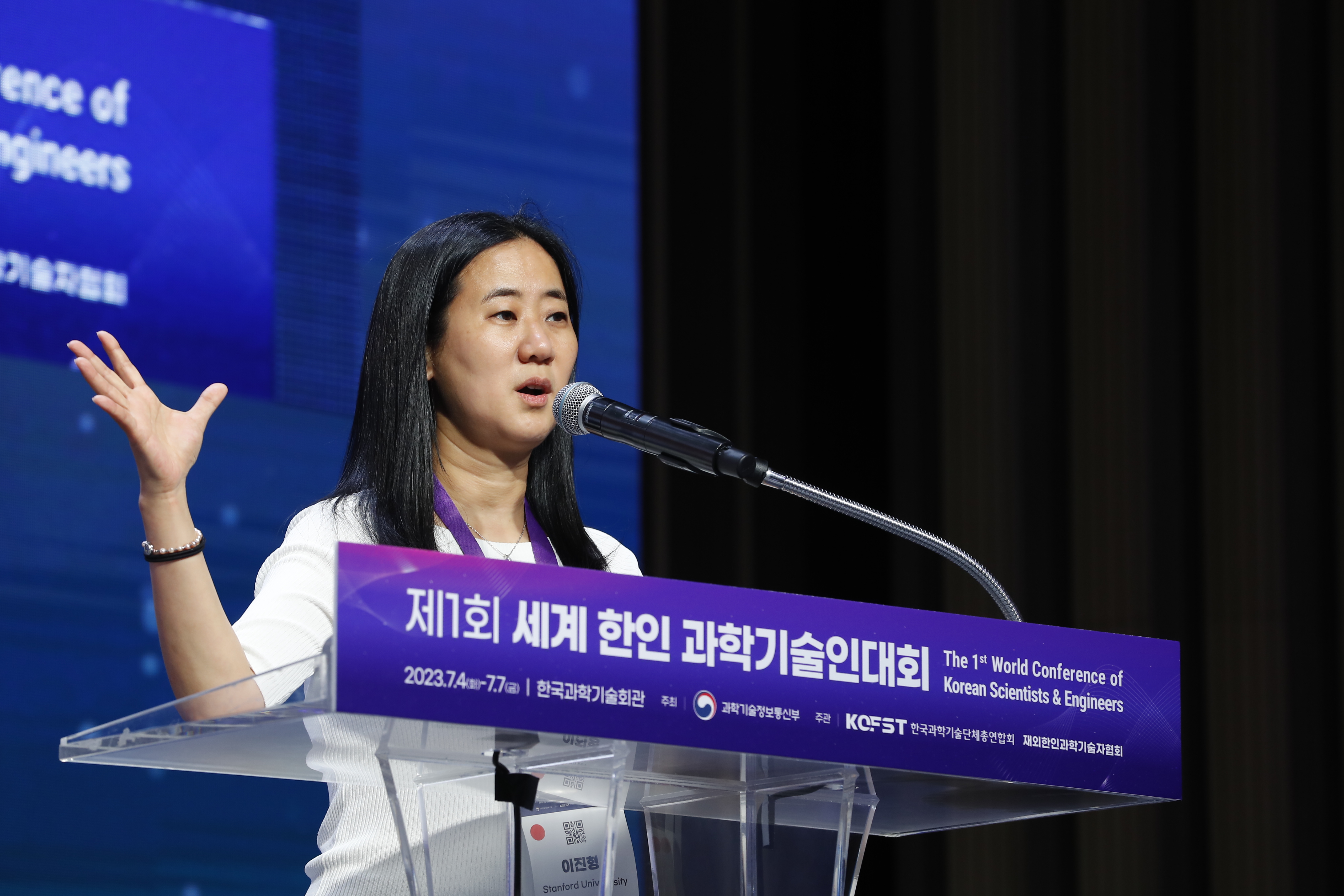 특별강연_3. 이진형 미국 스탠퍼드 대학교수가 7월 4일 서울 강남구 한국과학기술회관에서 열린 '제1회 세계 한인 과학기술인대회'에 특별강연중이다.