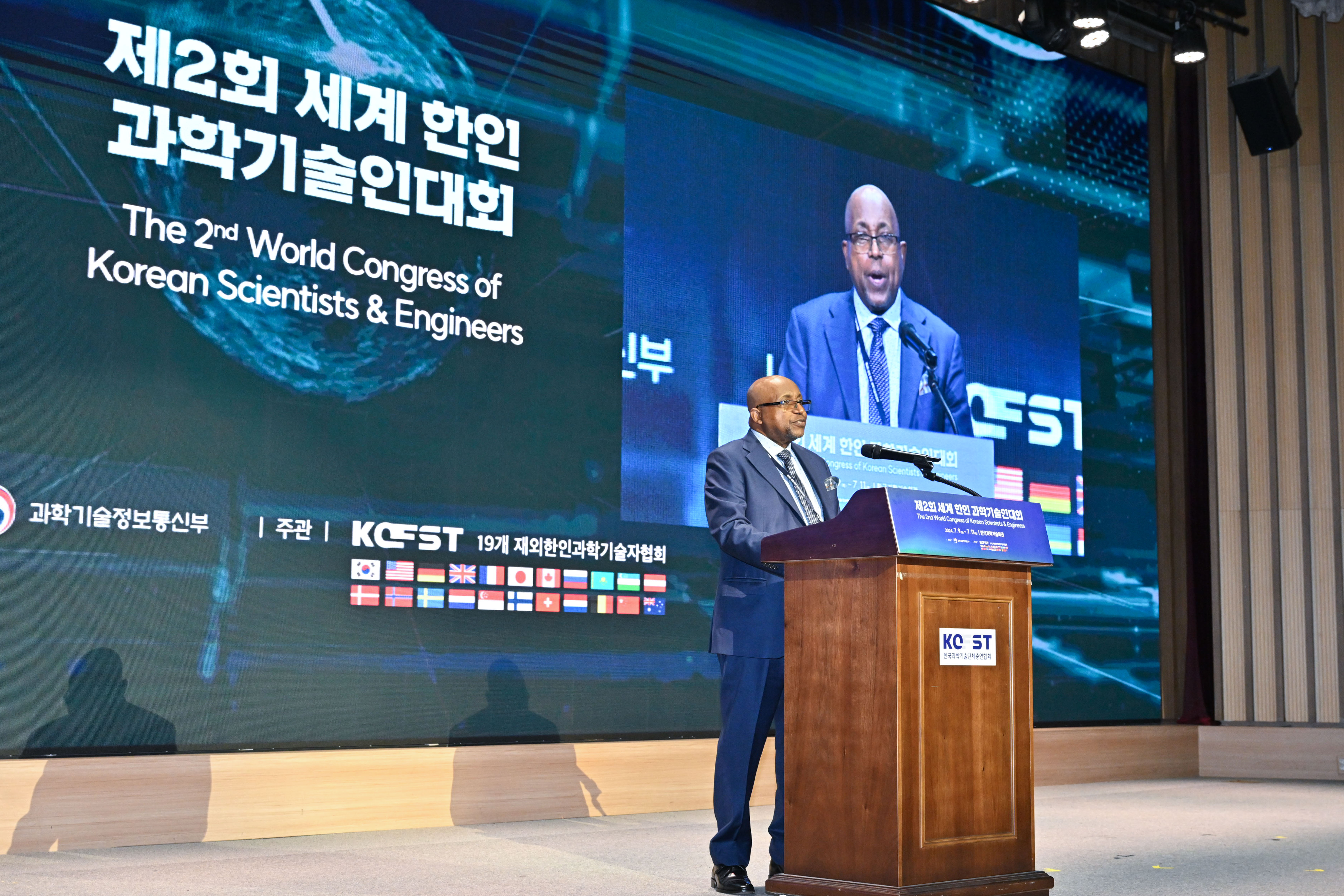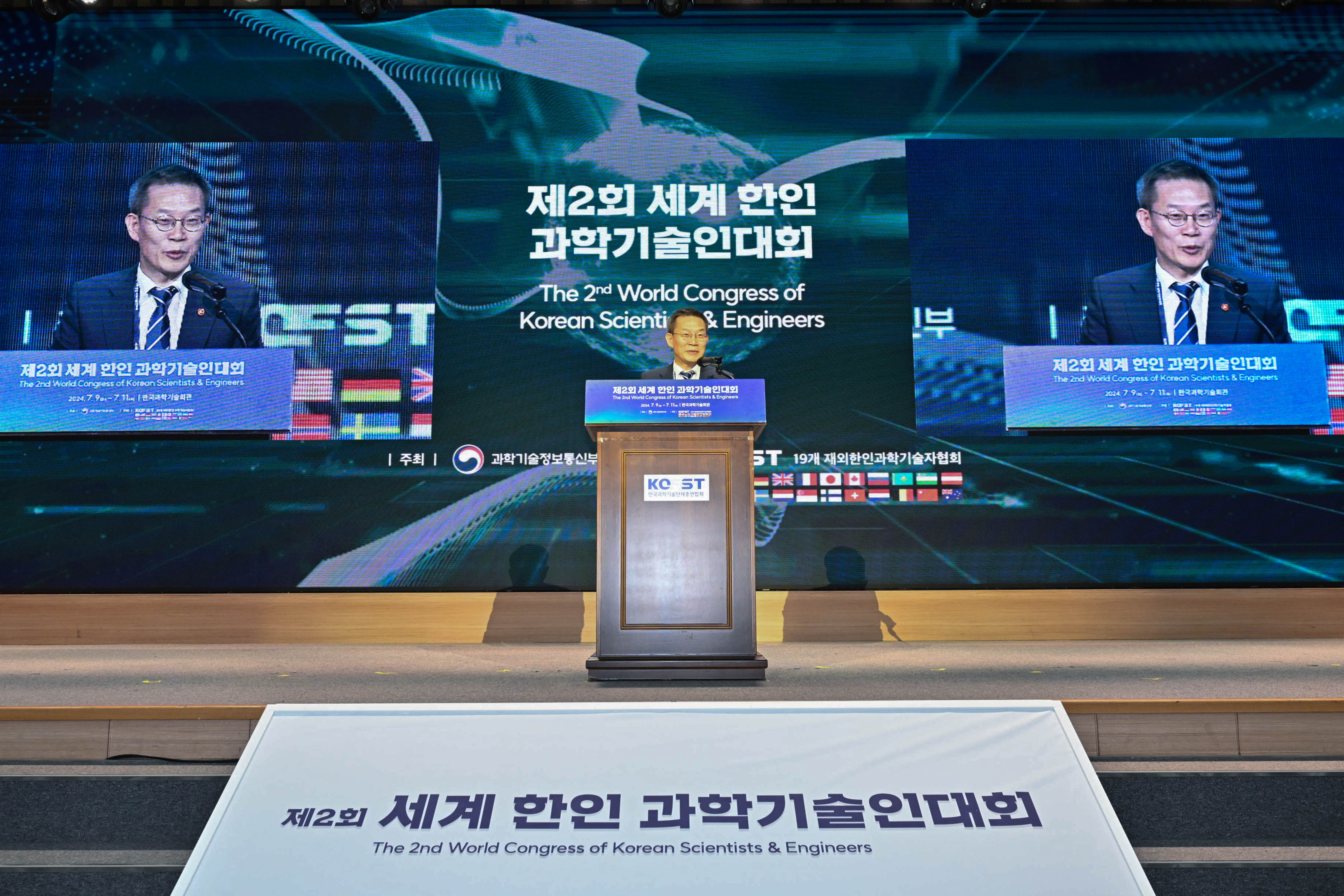 환영사_1. 이종호 과기정통부 장관은 7월 9일 서울 강남구 한국과학기술회관에서 열린 '제2회 세계 한인 과학기술인대회'의 환영사를 하고있다.