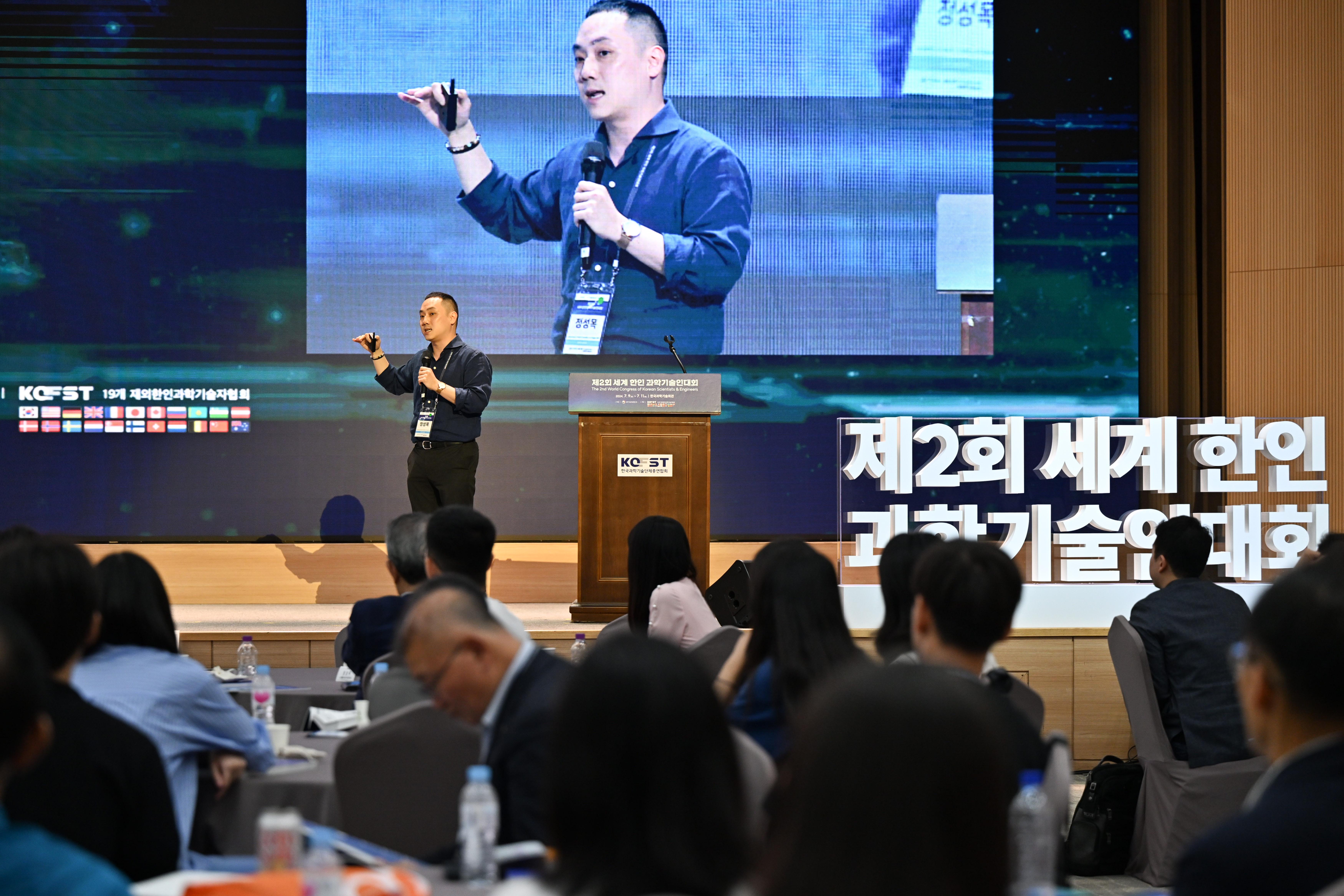 특별강연_1. 이제형 스트라디오 대표는 7월 9일 서울 강남구 한국과학기술회관에서 열린 '제2회 세계 한인 과학기술인대회'에 특별강연중이다.