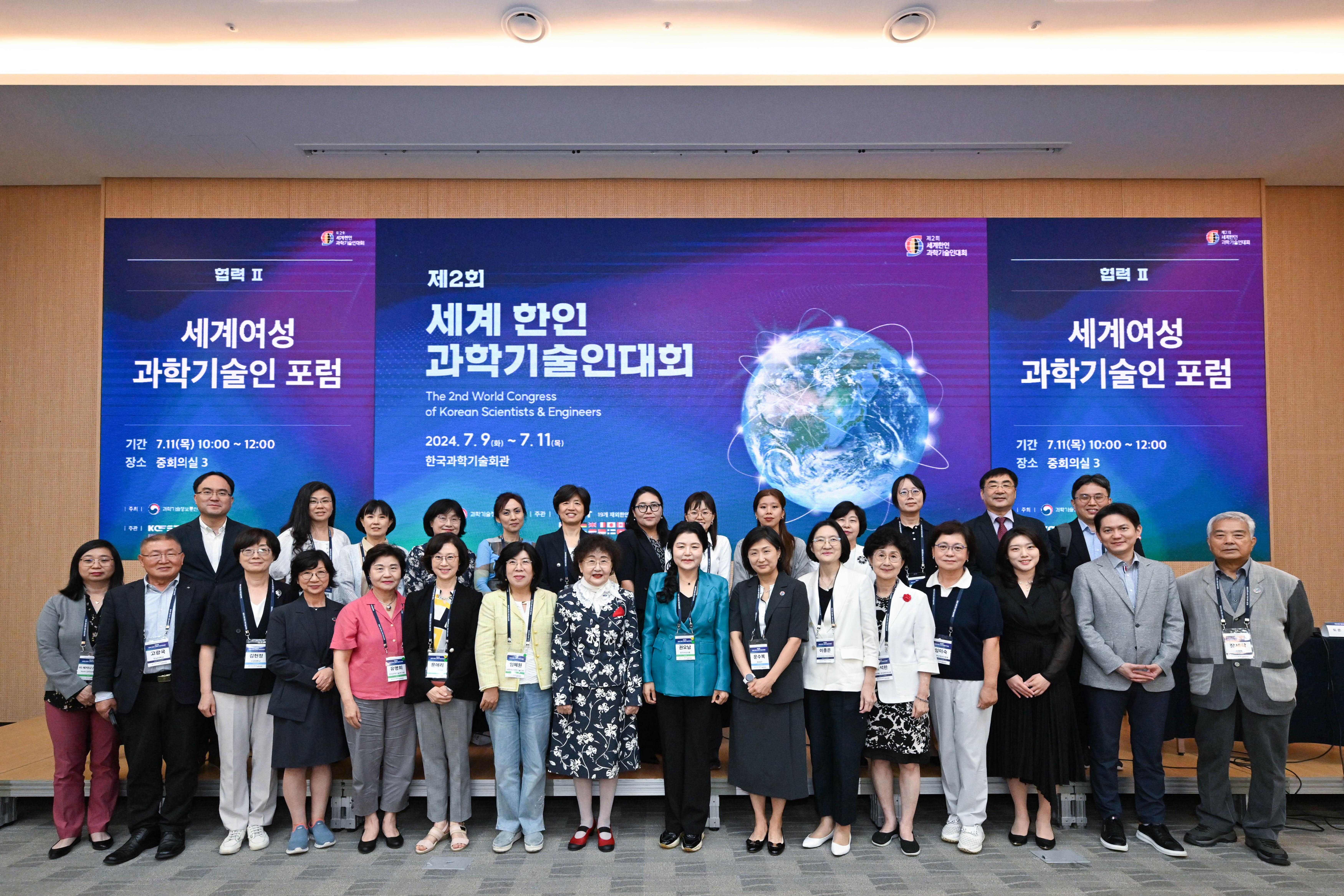 7월 11일에 제2회 세계 한인 과학기술인대회에서 진행한 세계여성과학기술인 포럼 단체사진
