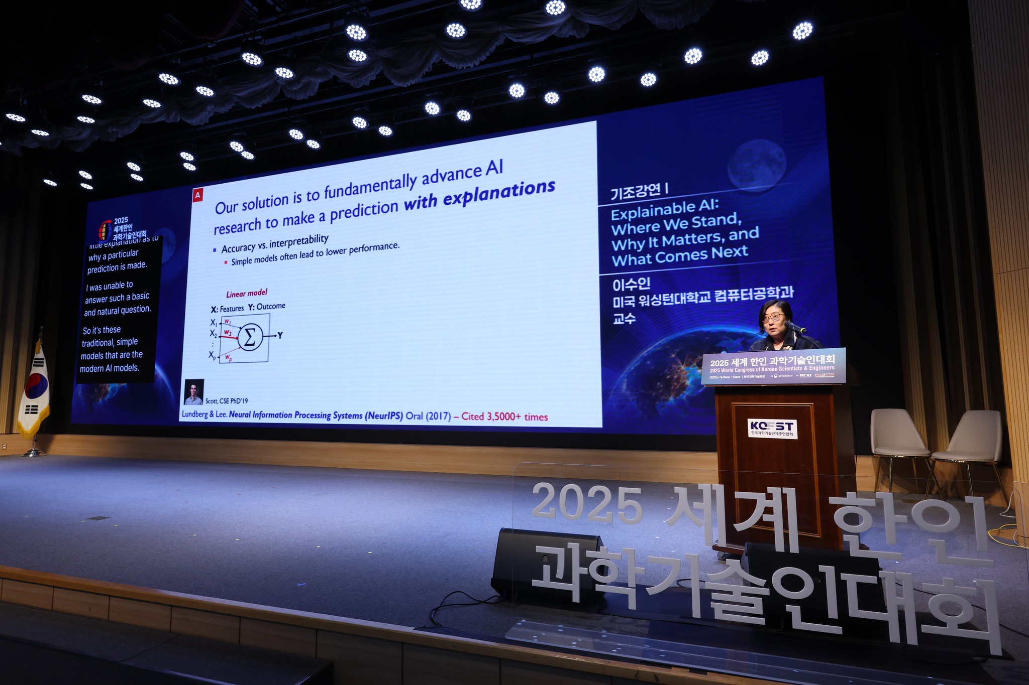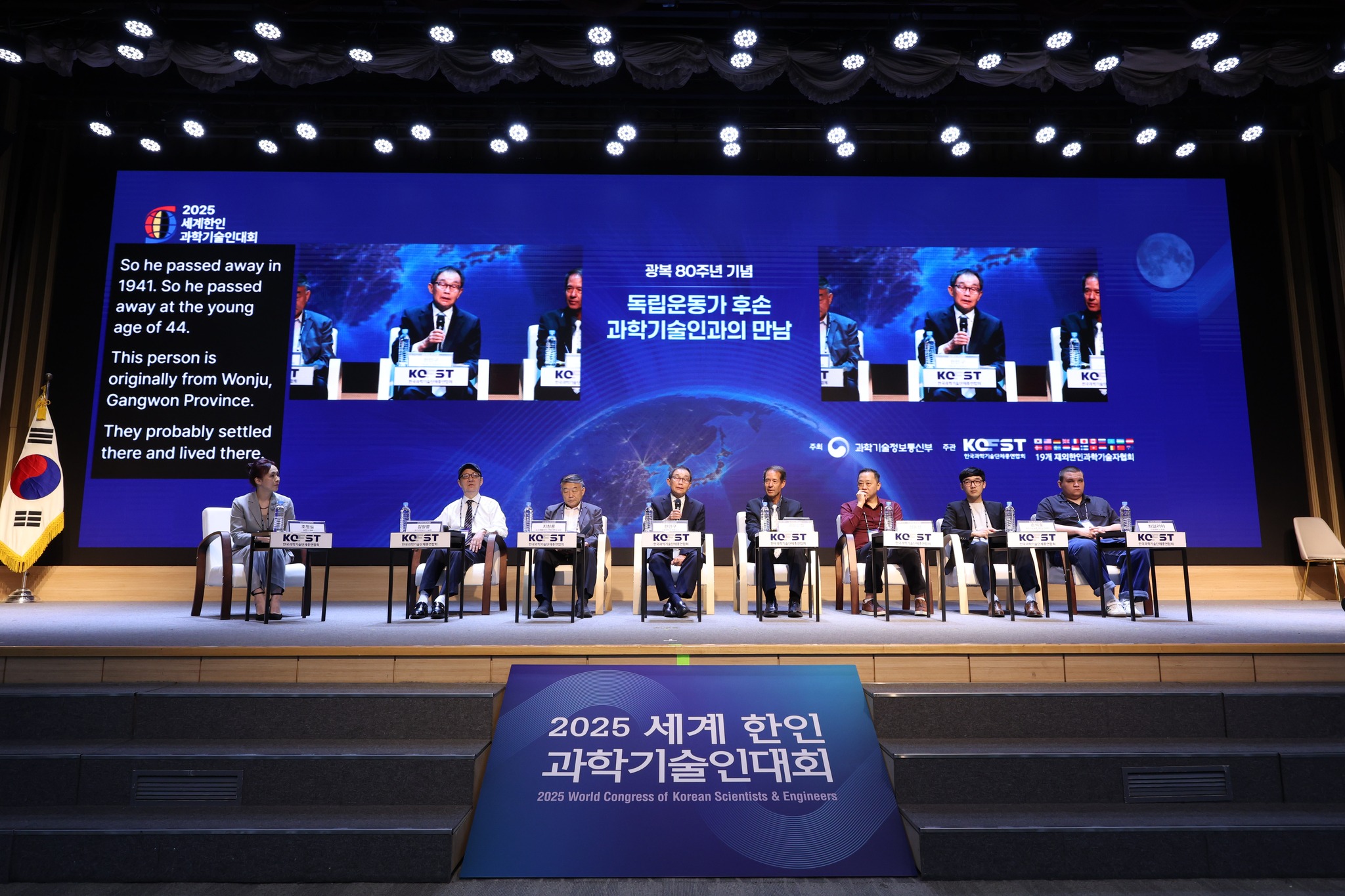 개회식에는 국내 및 해외 한인 과학기술인, 유상임 과기정통부 장관, 오명 대회장 등 과학기술계 인사가 참석하였으며, 광복 80주년을 기념하여 독립운동가 후손 과학기술인과 함께하는 퍼포먼스도 진행되었습니다. 첫 기조강연에는 이수인 미국 워싱턴대학교 컴퓨터공학과 교수가 나섰습니다.