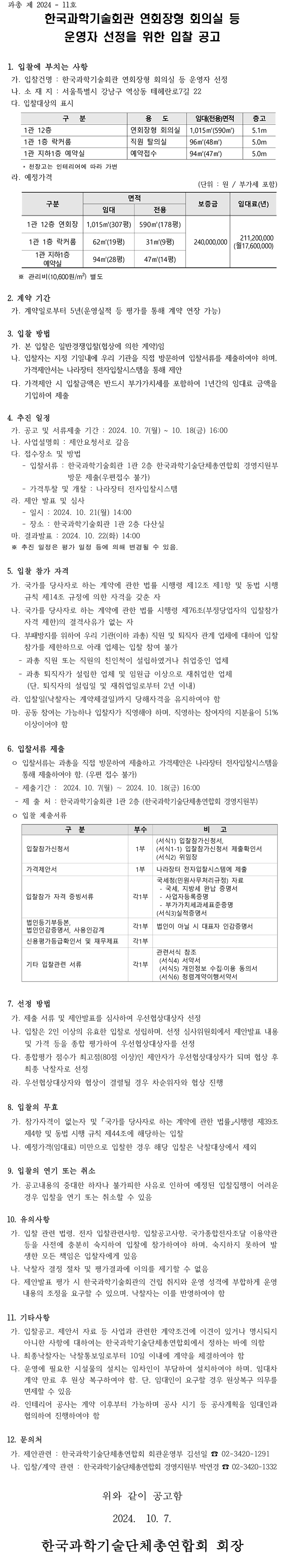 [공고]한국과학기술회관 연회장형 회의실 운영자 선정을 위한 입찰 공고