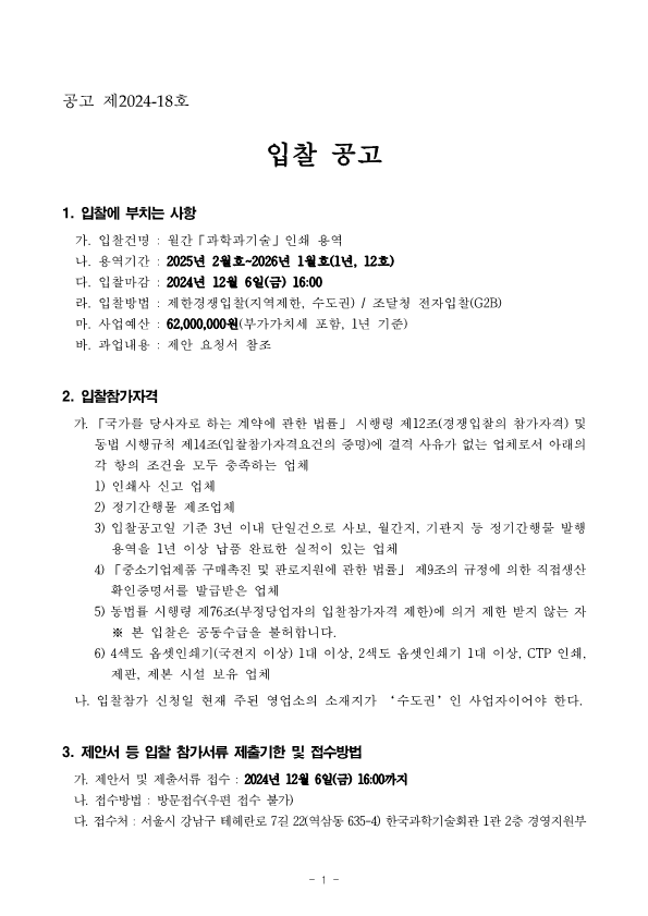 붙임1)입찰공고문(2025년 월간 과학과기술 인쇄용역)_1.pdf