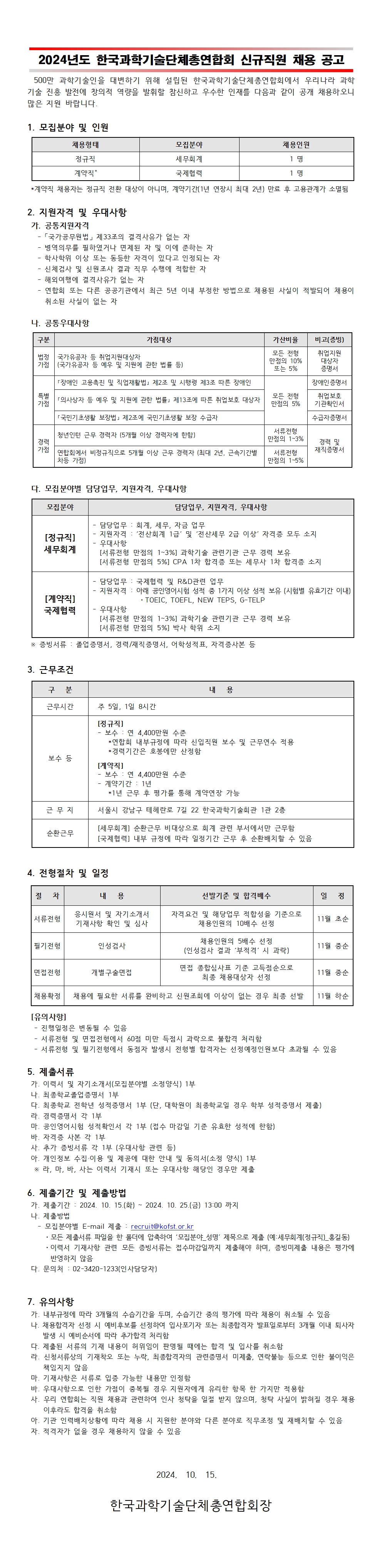 정규직 및 계약직 채용 공고(세무회계·국제협력, ~10/25(금) 13:00까지)