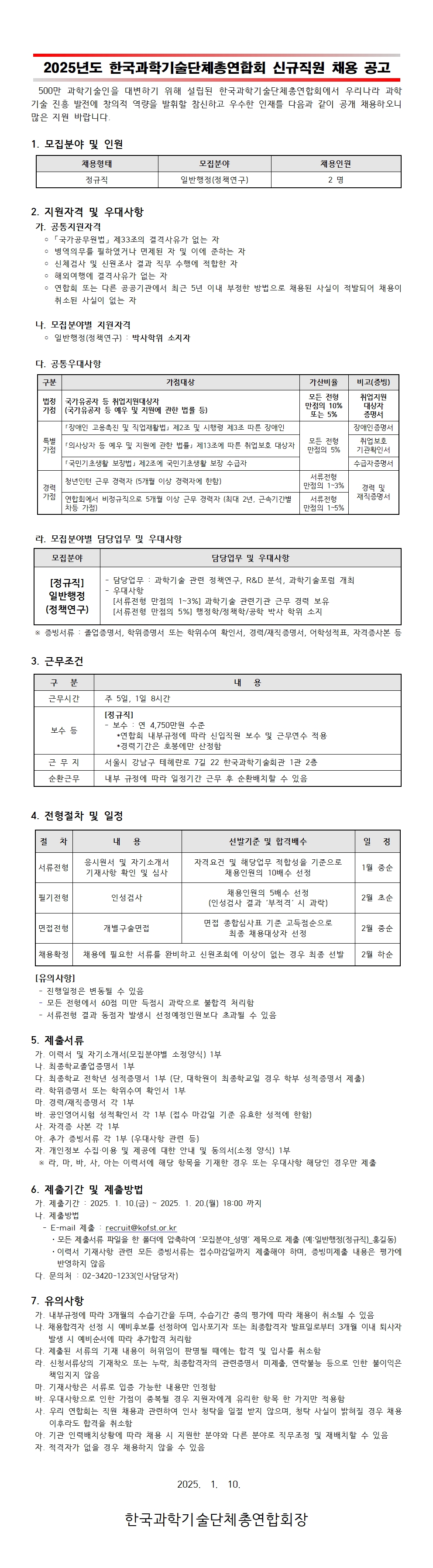 정규직 채용 공고(일반행정(정책연구), ~1/20(월) 18:00까지)