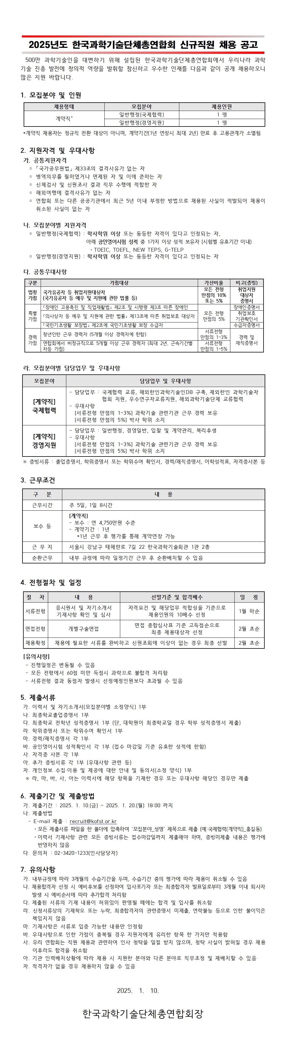 계약직 채용 공고(일반행정(국제협력)·일반행정(경영지원), ~1/20(월) 18:00까지)