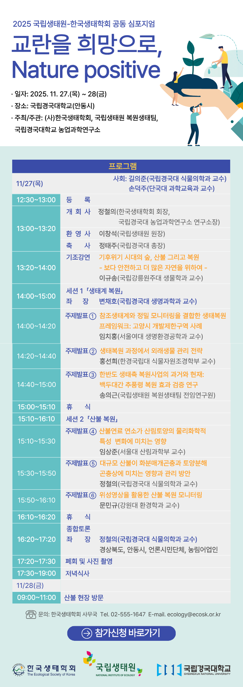 - 행 사 명: 2025 국립생태원-한국생태학회 공동 심포지엄
