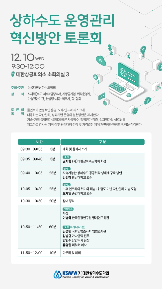 [대한상하수도학회] 상하수도 운영관리 혁신방안 토론회_12/10(수)
