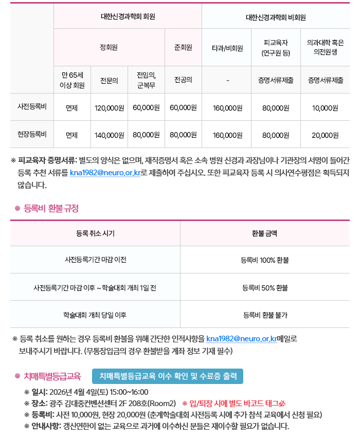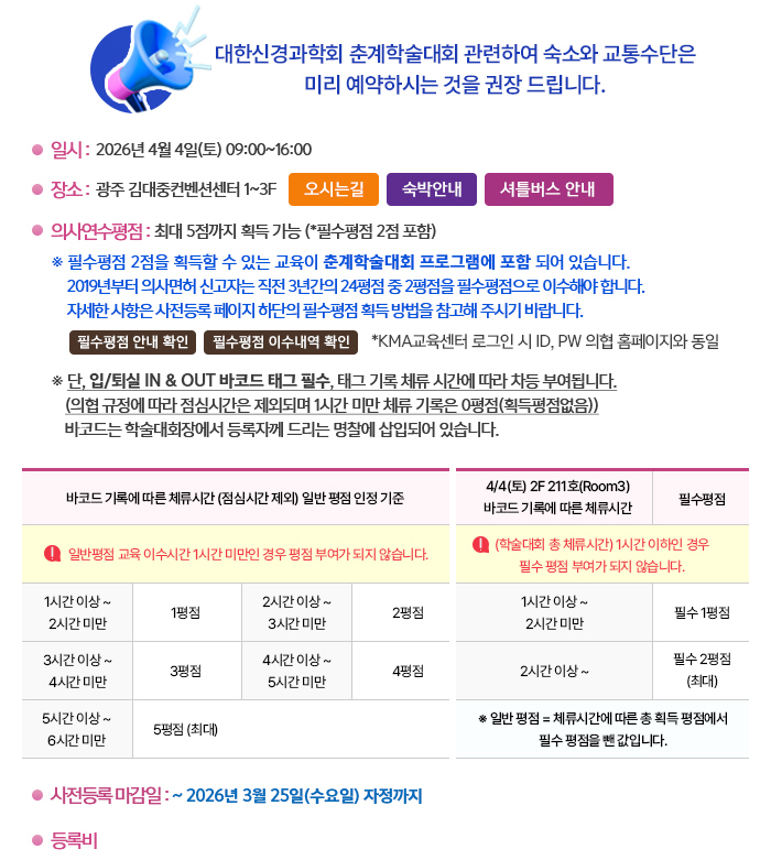[대한신경과학회] 제45차 2026년도 대한신경과학회 춘계학술대회 개최 ※4/4(토), 광주 김대중컨벤션센터